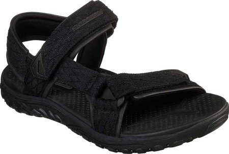 Go on more adventures in sporty style and supported comfort wearing the SKECHERS Relaxed Fit: Reggae – Tulo River Sandal. Woven diamond-patterned nylon webbing fabric upper in a casual comfort river style adjustable sandal with stitching accents and Memory Foam 360 insole. Woven-in textured tone-on-tone diamond pattern design fabric Adjustable front and instep straps for a precise fit Backless design for easy slip on comfort Easy grip tabs with hook and loop panels for quick adjustment Memory Foam 360 design with padded comfort strap lining Soft fabric lining Memory Foam cushioned and contoured comfort footbed Reggae design contoured supportive midsole Shock absorbing midsole Flexible traction rubber outsole Fit: True to Size Upper: Lightly Textured Sporty Woven Webbing Fabric