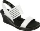 The future of style and comfort is here with the SKECHERS Cali Rumblers – Sci Fi sandal. Smooth faux leather and stretch fabric upper in a wedge heeled strappy comfort sandal with stitching accents and Memory Foam footbed. Single band front slide strap. Heel slingback strap. Front panel features six slim elastic fabric straps for stretchable comfort. Micromesh backing panel keeps straps perfectly aligned. Soft fabric strap lining. Memory Foam cushioned comfort footbed. Arch cushion on footbed. Lightweight cushioned sole. 1/2 inch midsole height. 2 1/4 inch total wedge heel height. Flexible traction outsole. Heel Height: 2 1/2″ Fit: True to Size Upper: Smooth Faux Leather